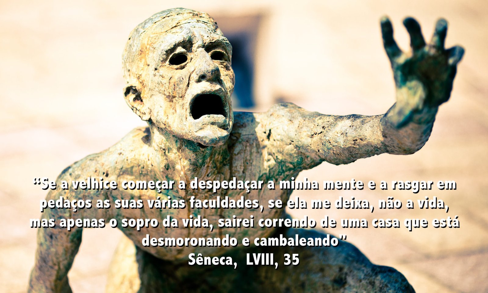 “se a velhice começar a despedaçar a minha mente e a rasgar em pedaços as suas várias faculdades, se ela me deixa, não a vida, mas apenas o sopro da vida, sairei correndo de uma casa que está desmoronando e cambaleando”. Não vou evitar a doença procurando a morte, desde que a doença seja curável e não impeça minha alma. Aquele que morre apenas porque está com dor é um fraco, um covarde; mas aquele que vive apenas para afrontar esta dor, é um tolo. (LVIII, 35-36)