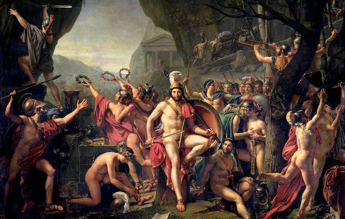 Iria usar a pintura clássica de Leônidas nas Termópilas por Jacques Louis David… mas por algum motivo, esses guerreiros não me convencem.